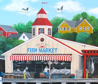 A fish market in a wonderful setting. You can't find anything like this in the real world... only in my painting!